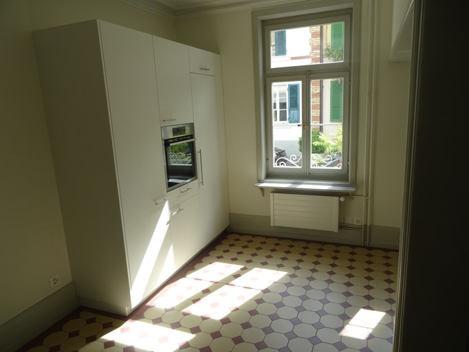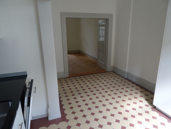 Das schützenswerte Reihen-Einfamilienhaus im Marzili-Quartier hatte eine sanfte Sanierung nötig. Die Küche und die Böden wurden in Zusammenarbeit mit der Denkmalpflege der Stadt Bern erneuert.