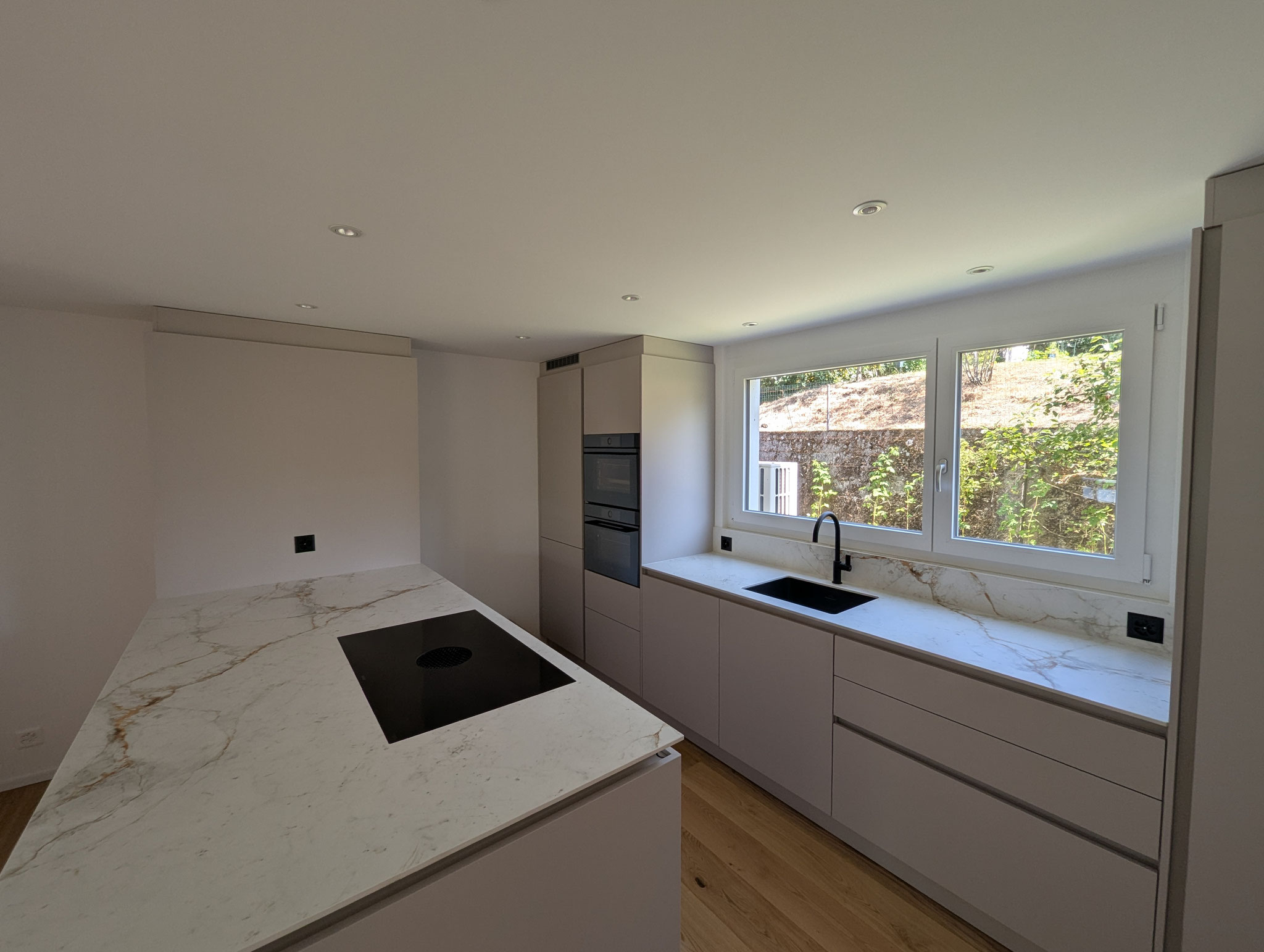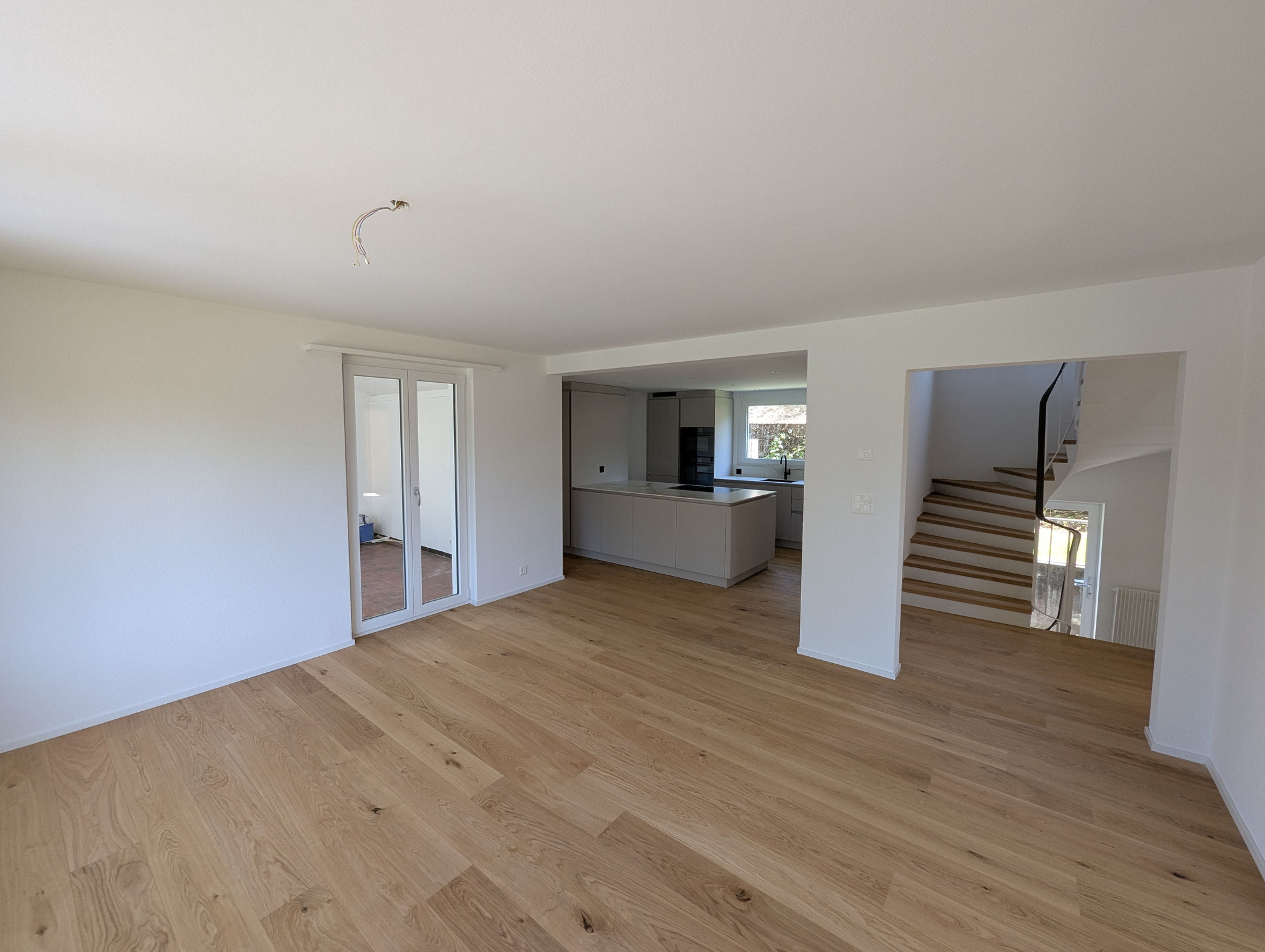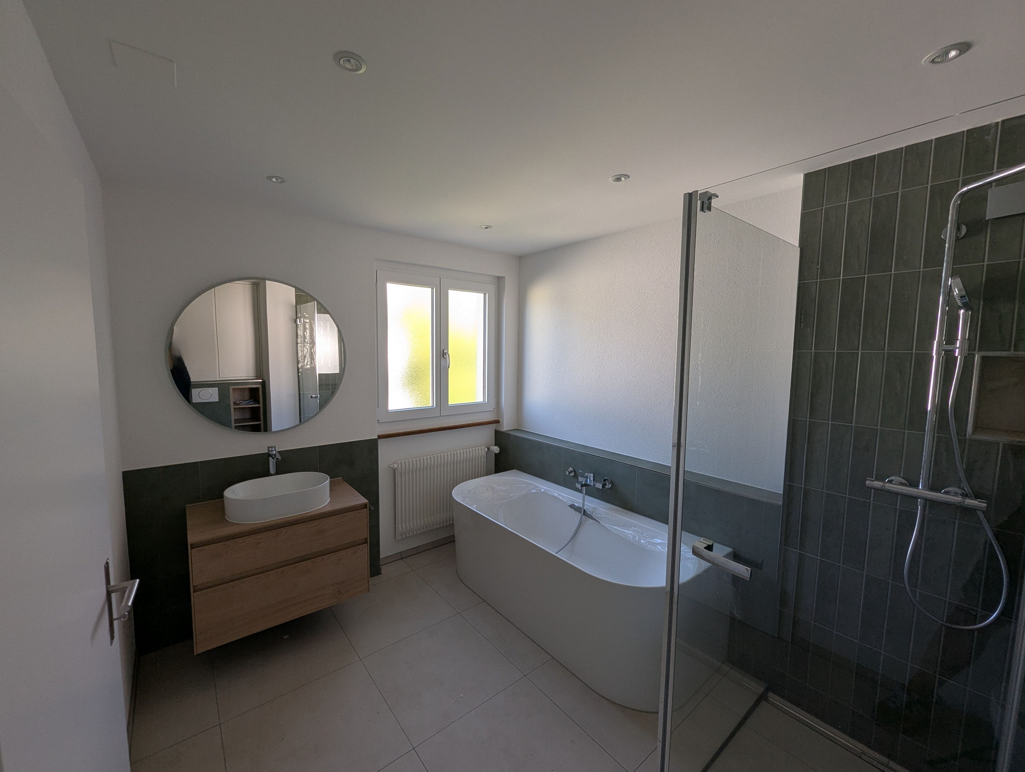 In Köniz durften wir ein in die Jahre gekommenes Haus umfassend renovieren. Die Nasszellen wurden komplett erneuert, wobei eine Nasszelle neu erstellt wurde. Die Küche wurde gegen das Wohnen/Essen hin geöffnet und so stark modernisiert. Im Erdgeschoss wurde eine Bodenheizung eingebaut und im ganzen Haus die Böden, die Wände und die Decken saniert.